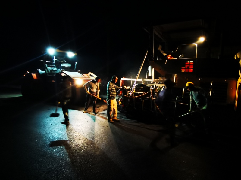 来到施工现场看到,随着沥青摊铺机开过,沥青混合料从摊铺机上被均匀洒出,2台压路机紧随其后,对路面进行反复压实。14日从上午9点一直作业到晚上10点多,到15日下午3点,1340米路面全部完成沥青浇筑。