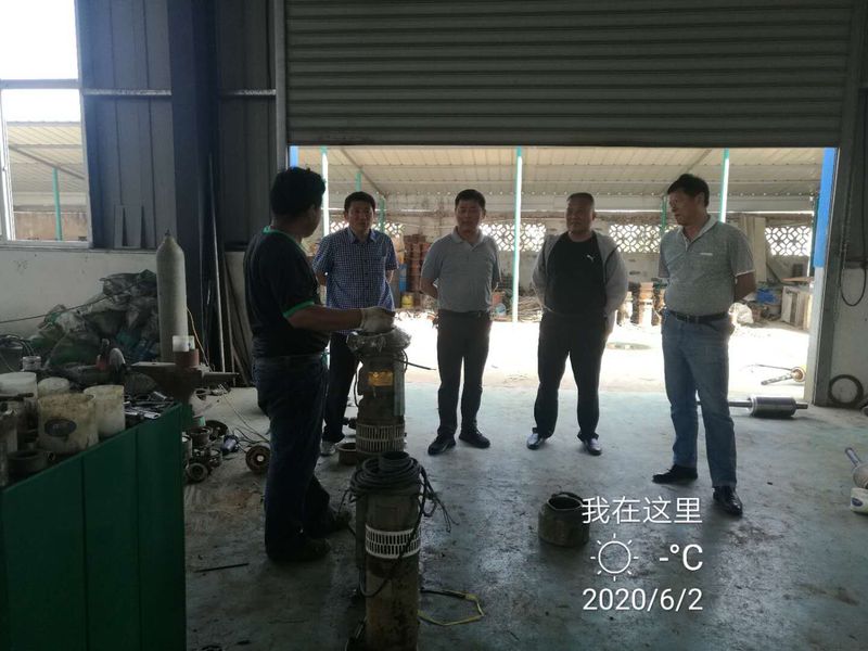 图为检查组在江苏建水泵业有限公司督查疫情防控工作。