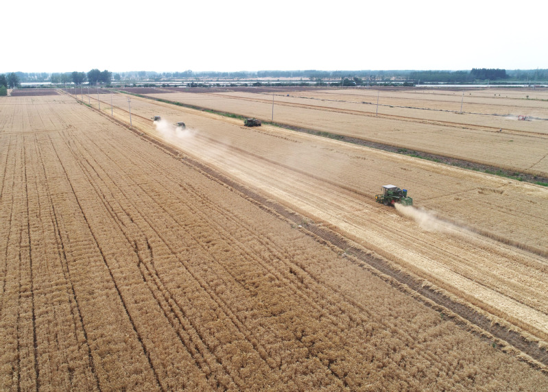宝应湖小麦“开镰”收割,到处呈现出一片丰收的景象