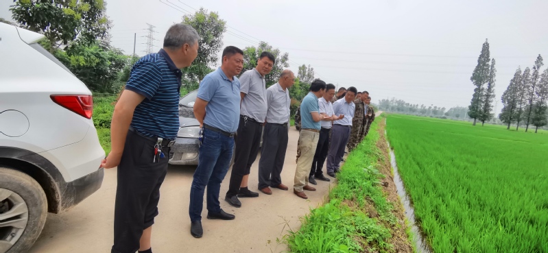 一行人先后来到宝应湖分公司外拓基地--共和生产区、本部二、四生产区,听取了水稻生产相关情况介绍。今年,宝应湖分公司三夏紧紧围绕“三高一控”,收、种、管统筹协调,进度与质量两手抓、两促进,使各项工作有序推进。6月20日,水稻栽插一结束,宝应湖分公司立即组织农业生产大检查,迅速转移三夏工作重点,重抓夏管,以夏促秋争取农业全年丰收。随后又相应组织现场观摩、正反评比等形式多样的农业生产检查,查漏补缺,在全公司掀起比学赶帮超的热潮。目前,分公司4万多亩水稻田间化除效果好、长势好,个体、群体协调到位,达到预计成穗。
