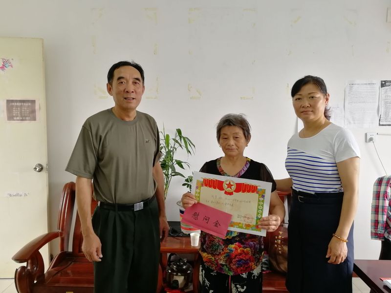 “大妈这是县和农场公司给予刘军的奖励金,一共4000元,您拿好了,祝贺您为祖国、为部队培养了优秀的军人,刘军为家乡争光了,我们感到光荣和自豪。今后,还希望您一大家子继续关心支持刘军,让他安心服役,再立新功,请转告他,农场公司是他坚强的后盾。”农场公司人武部副部长王启茂与刘军的家人交谈着,不忘悉心叮嘱几句。拿着奖励金,刘军家人连连道谢:“感谢农场公司对刘军、对我一家的重视和关心,我们一定全力支持他,并把农场对他的大爱告诉他,激励他继续全心全意为人民服务,绽放出人生的华光溢彩。”