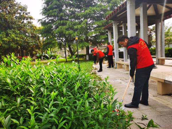 4月27日,宝应湖农场公司宝怡园内一位位身穿红色志愿服的志愿者,忙碌穿梭在绿油油的树丛中、草坪间,成为春天里闪耀的一抹鲜艳的中国红。这是农场公司机关党支部正在开展“学党史 办实事”主题党日活动。
