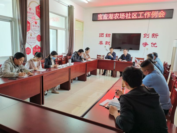 5月17日,宝应湖农场社区管理委员会召开周例会,社区全体员工参会。会议对当前重点、难点工作完成情况、存在困难、工作措施等进行了梳理通报,要求所有与会人员全身心投入、全方位跟进、全力量攻坚,促进社区工作有目标、有计划、有落实、有跟踪、有考核,凝心聚力共建平安、健康、和谐、幸福社区。