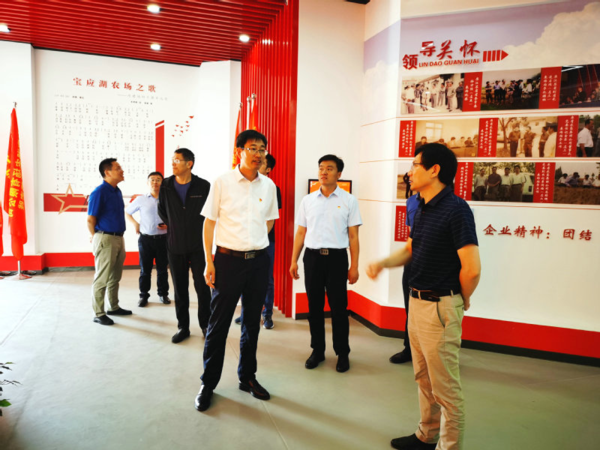 临海农场公司朱明亮、纪委书记姜超,宝应湖农场公司党委书记李乾清、总经理王林、纪委书记胡双、副总经理周爱国以及相关部门负责人等共聚一堂,围绕党的领导和公司治理相统一的体制机制建设、政治建设、思想建设、基层组织建设、干部人才队伍建设、纪律作风建设、巡察整改工作、统战群团工作、党委履行主体责任等方面工作进行广泛深入地探讨,就各自负责的工作中的重点、难点问题进行了充分的交流。集中座谈后,朱明亮一行还参观了宝应湖农场公司新时代文明实践所。