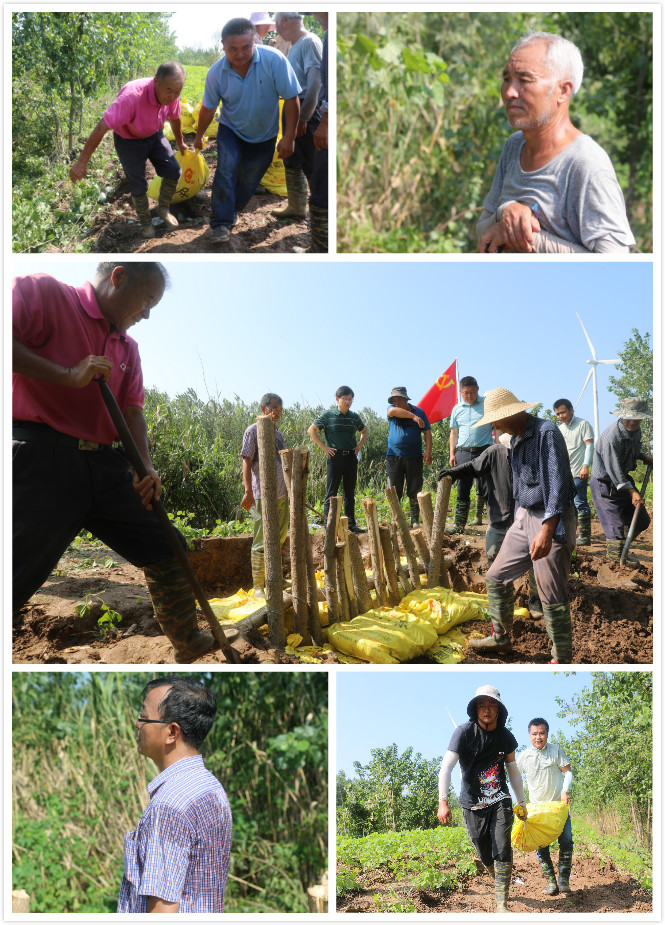 “哗……”5点10分,圩堤塌陷出一个直径3米深达2米的大坑。事为宜迟,大家分工合作,统筹协调,砍树做桩,挖泥装袋,迅即展开抢堵管涌。40多岁的党员倪行文最年轻,他抡起大锤打桩;50多岁的党员邹秀龙、孙福兵不甘示弱,运桩、运泥袋,既是指挥员也是战斗员;60多岁的老党员江学祥经验丰富,他和王绍来跳进塌陷的大坑里,填实泥袋。由于发现即时、处理即时,9点多,经过多方合力,三分场南公司河管涌被彻底堵住,为圩堤内200多户居民,近万亩农田堵实了安全防护墙。