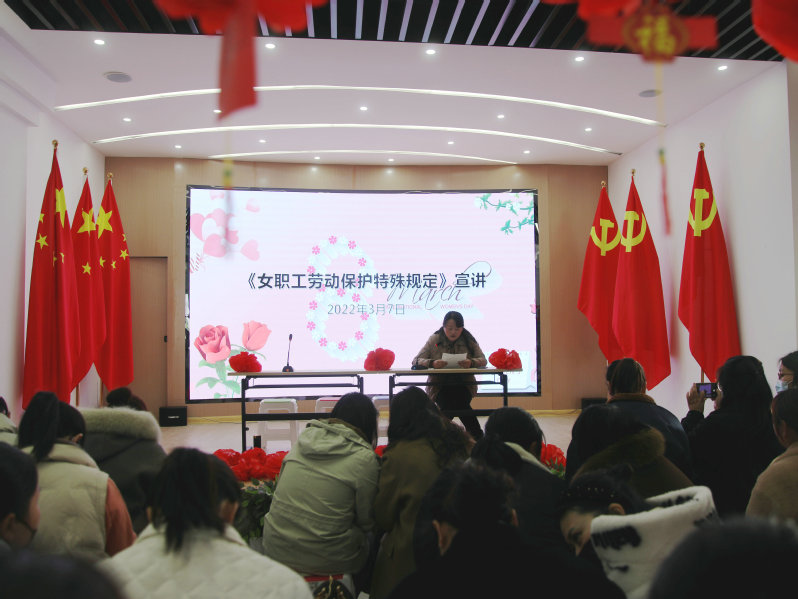 专题学习中,为妇女干部作《女职工劳动保护特殊规定》专题宣讲,着重宣讲了女职工月经期保护、孕期保护、产期保护、哺乳期保护、更年期保护的女职工“五期保护”的主要内容,还分享了中国共产党唯一的女创始人向警予、温婉骄杨英雄女杰杨开慧、有勇有谋的巾帼英雄贺英、甘将热血沃中华赵一曼、化作红梅映山红江竹筠、屡建奇功的“现代花木兰”郭俊卿五位巾帼英豪的事迹。知识竞赛精选了党史知识、安全生产、女性健康、农业科技、维权保护等方面50余条答题。
