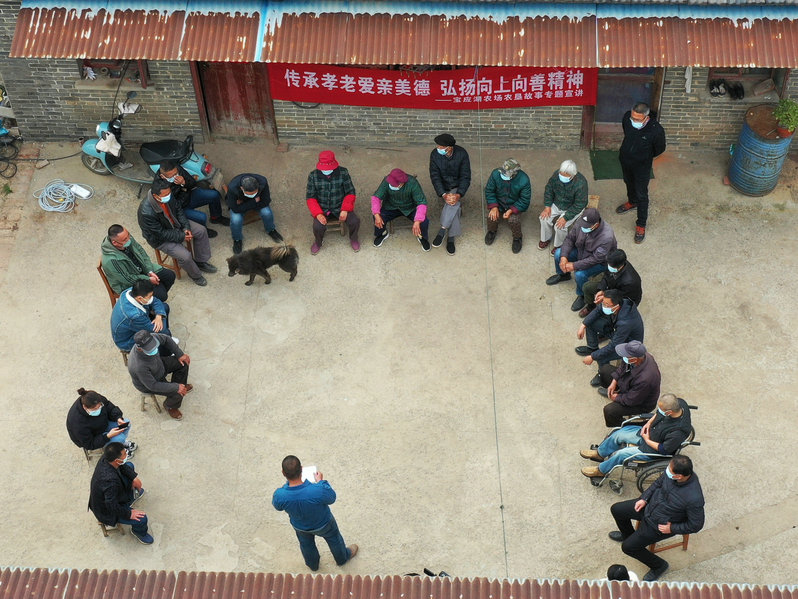 宣讲在“淮安市最美家庭”杨宝国家门前小院举办。一生产区管理员及邻近了职工居民闻讯赶来聆听宣讲。“淮安市最美家庭”代表杨宝国与大家分享了自己的家庭故事。1994年一场工伤事故导致弟弟杨宝军终身瘫痪,2005年母亲杨长兰患脑梗塞、脑萎缩和帕金森综合症,两个股骨头坏死,一直处于半瘫痪状态;2008年,父亲杨瑞清突发脑溢血留下了终身瘫痪、不能言语等严重后遗症。27年来,在亲人相继遭遇不幸之后,杨宝国与妻子陈云珍不离不弃,无微不至地照料先后瘫痪的弟弟和父母,抒写了一曲孝老爱亲的感人颂歌。杨宝国家庭被评为“淮安市最美家庭”,妻子陈云珍被表彰为“感动农发十大人物”。