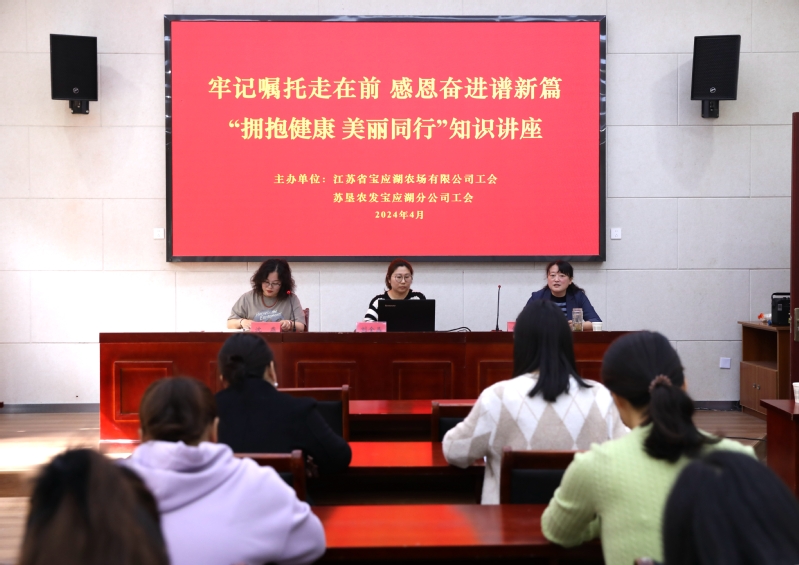 为关心关爱女职工身心健康,4月16日下午,由宝应湖农场公司工会、苏垦农发宝应湖分公司工会共同举办的关爱女职工健康知识讲座开讲。讲座以“牢记嘱托走在前感恩奋进谱新篇 拥抱健康美丽同行”为主题,淮安市妇幼保健院宫颈病科主治医师刘金晶受邀到场授课,农场公司、社区、农发分公司部分女职工代表参加学习。