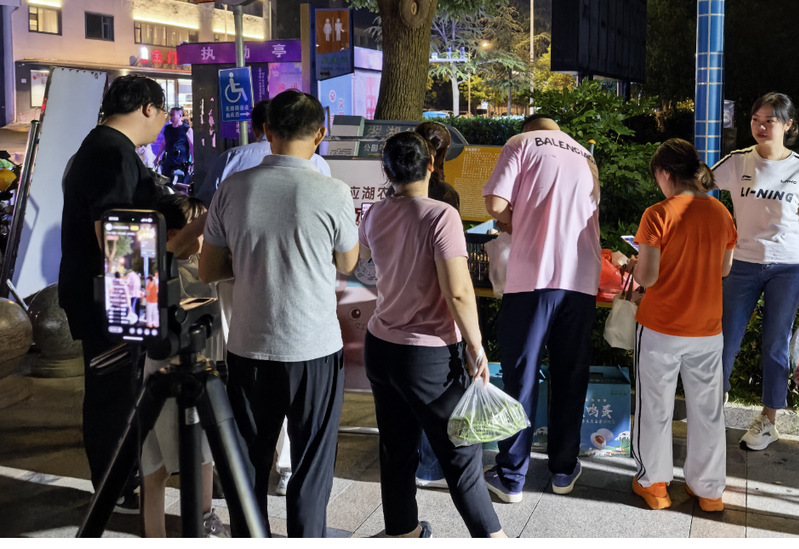 当天18时许,团队就已抵达翠湖公园。大家分工明确,有人快速搭建起简易展台,有人引导市民扫码关注农场电商视频号和农场官方抖音号,还有人架起手机支架,调试设备准备开启线上直播。“白天大家忙着处理订单、对接供应链,晚上公园人多,正好借这个时间做推广,让更多人知道咱们农场的好产品。”电商部负责人杨阳一边整理物品,一边向路过市民介绍。