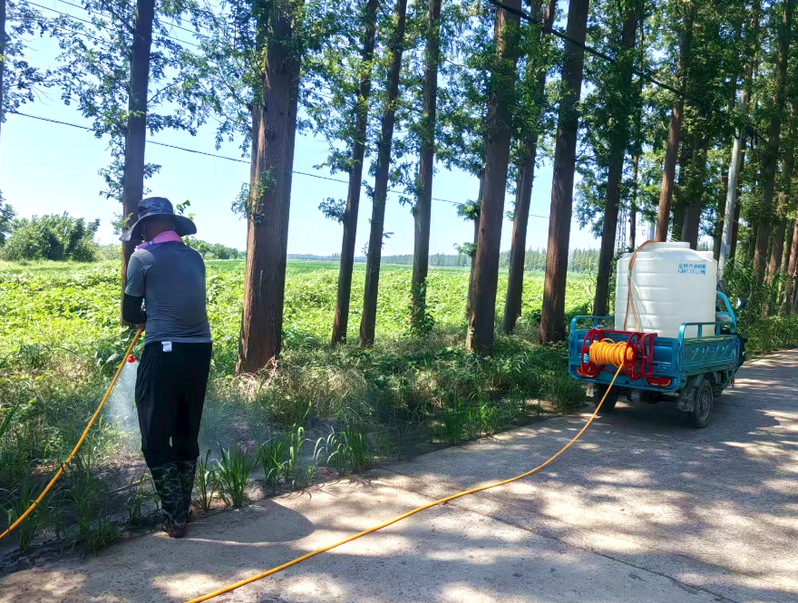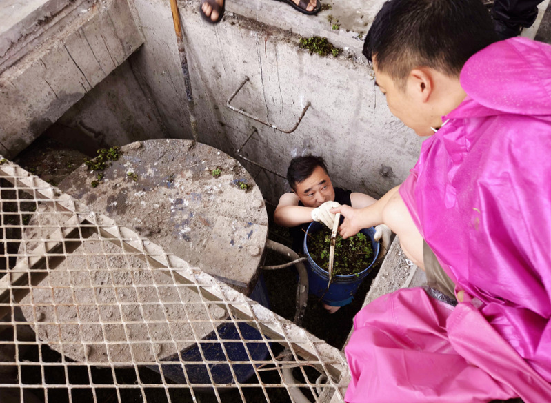 在一大队居民区排涝泵站,入党发展对象陆子豪正冒雨用4个泥包将倒灌装置压紧压实。“该处防倒灌装置密封性不够,一旦下大雨,雨水、外河水倒灌到居民区河道,可能造成洪涝灾害,后果将不堪设想。另外,我们还增加了临时泵,保证排水正常。”居委会结合辖区情况,对区域排水安全、交通安全开展集中隐患整治。“现在正处于高温高湿的特殊时期,杂草生长茂盛,既不美观又会形成视觉盲区,影响交通安全。”居委会管理员既当指挥员又当作战员,乘着早晚凉时段,集中清除一分场水杉林、三分场劳动桥、4大队居民区排水渠等处杂草,防止杂草堵塞排水,扮靓场域环境。