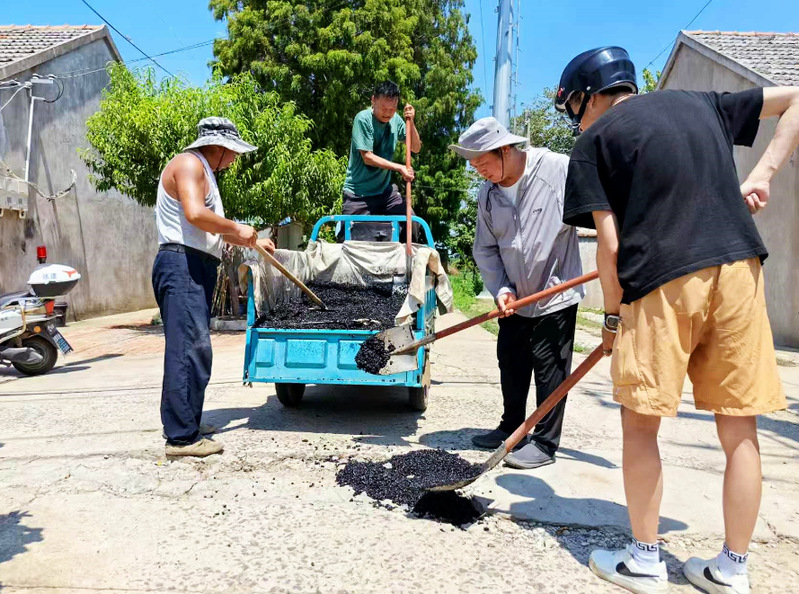 “以前下雨天出门,遇到道路破损的地方总担心溅到一身泥水。现在好了,地平了、雨水也不积到一处了,社区用心为我们老百姓办了好事。”居民刘大爷指着焕然一新的路面感慨道。夏季高温持续,加上出行车辆增加,导致多条路面出现不同程度的破损。民生无小事,枝叶总关情。社区科室联合居委会齐上阵,聚焦居民大事小情。我负责收集石子,你来拖运沥青、他拿铁锹垫平……施工现场,管理人员、二线党员、产业工人齐心合力,化身服务先锋,开展了一场“便民出行安全保卫战”。虽然,户外体感温度超出35℃,一锹一铲间,汗水早已湿透衣衫,但大家的劳动热情丝毫未减。当看到刘圩景观河旁、宝农中心小学门口、创业路等居民出行道路,6大队农田便道等处的洼塘被一点点填满、垫平,劳动者们都会心地笑了。