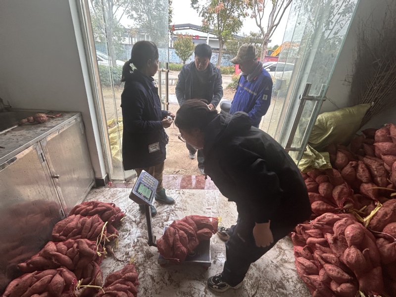 线下销售现场早已是热火朝天。“这烟薯25号皮薄肉厚,烤完满屋子香,还能流蜜,顾客回购率特别高!我们提前半个月就签了订单,就等这波新鲜上市。”周边商超采购商李先生一边清点刚装车的红薯,一边笑着说。农场依托订单式采收附近居民拎着布袋、提着菜篮陆续赶来。“这儿的红薯吃着软糯香甜,价格还实惠,每年这个时候我都要多买几十斤存着,蒸着吃、烤着吃都好吃!”农场门口的直销点前的张阿姨笑着说道。此外,农场与社区超市、团购客商建立稳定合作,确保新鲜红薯能快速直达线下零售端。