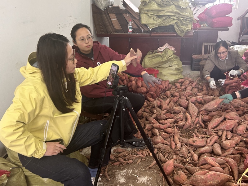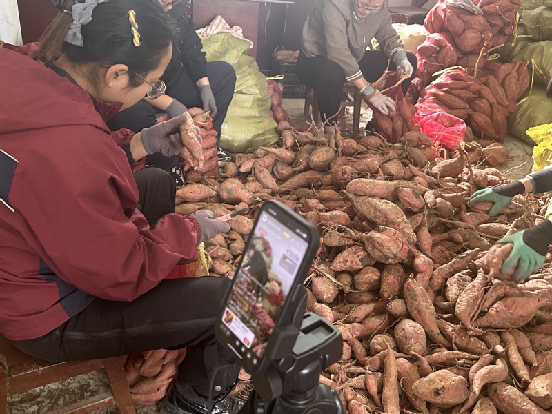 直播间里的热度同样居高不下。镜头前,刚出炉的红薯轻轻一掰便裂出金黄纹路,晶莹的蜜油顺着果肉缓缓渗出,主播手持红薯向镜头展示:“家人们看这果肉,细腻无丝,咬一口满是香甜!”话音刚落,直播间弹幕瞬间刷屏,“看着就好吃,赶紧上链接”“去年买过,今年还想囤”的留言不断,订单提示音更是此起彼伏。为了让外地消费者也能尝到这份新鲜,农场专门开辟红薯专场直播,从田间挖薯到打包发货全程直播,让大家买得放心、吃得安心。