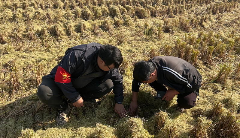“检查不是挑毛病,是帮大家把‘到手的粮’守牢。”检查小组秉持“检查+指导”同步推进的原则,每到一块收割田,逐台过堂,检查收割损失率等情况,既拿“标尺”测数据,也带“方法”解难题。在三生产区的稻田里,检查人员张帅蹲下身,细数散落的谷粒:“每平方尺损失粒不能超50粒,这是考核办法里‘收割损失率≤1.5%’的硬杠杠,也是咱们‘颗粒归仓’的底线。”