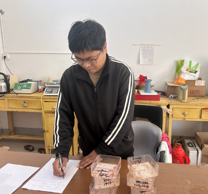 “种子发芽率是播种量的‘定盘星’,播种前常规进行发芽率检测是保障麦种质量与播量的 重要前提。”分公司农业技术人员手持发芽盒介绍。为确保数据精准,技术人员从各批次小麦种子中随机取样,按照“每批次3组、每组100粒”的标准,将种子均匀铺在铺有湿润滤纸的发芽盒内,置于25℃恒温培养箱中,3天后统计发芽率情况,并根据播期、粒重及发芽率等指标合理调整播种量。