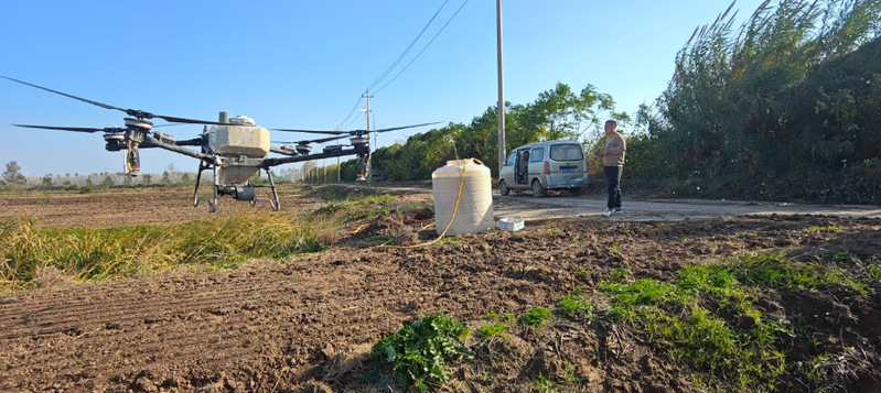 走进三生产区11队的施药现场,工作人员严格按照方案要求,选用高效低毒的土壤封闭剂,采用无人机喷雾方式作业。针对不同田块的杂草发生特点,工作人员现场指导调整用药剂量和喷施角度,确保药剂均匀覆盖土壤表面,形成有效药层。