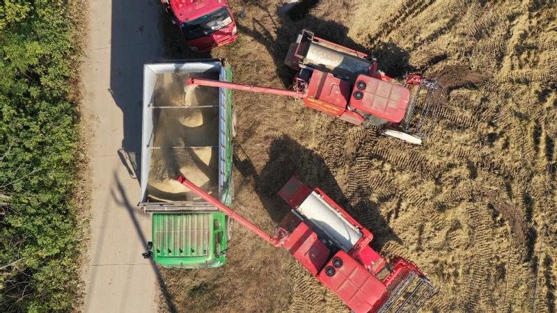 在收割现场,8台收割机以“梯队作业、循环推进”的模式,高效完成切割、脱粒等一系列工序。金色的稻穗被卷入机器后,饱满的稻谷迅速与稻秆分离,随后装入运输车辆,随即运往稻谷仓储中心。据了解,宝应湖农场的有机水稻种植过程中,全程采用生态种植技术,禁用化学农药、化肥和生长调节剂,通过秸秆还田、绿肥种植、生物防治等方式改良土壤、防控病虫害,从源头保障水稻的有机品质。“双有机认证”的稻谷,不仅米粒晶莹剔透、口感软糯香甜,更富含多种人体所需的营养成分,市场认可度极高。