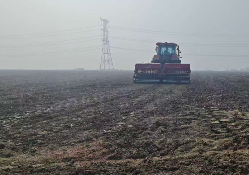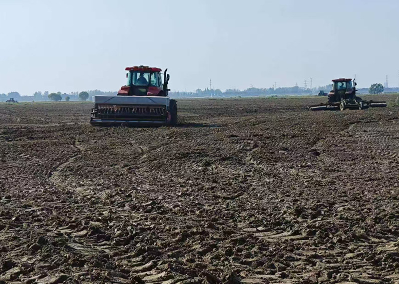 “突突突……”11月24日,宝应湖分公司的托管基地——东偏泓生产区的滩田上,一台台播种机沿着匀速前行,伴随着机械的轰鸣声,颗粒饱满的麦种精准落入土壤,随后覆土、镇压一气呵成。自上周四启动小麦播种工作以来,东偏泓生产区7000余亩小麦已完成3500亩播种任务,在前期受上游泄洪延误播期的不利条件下,凭借充分的前期准备,播种工作正高效有序推进。