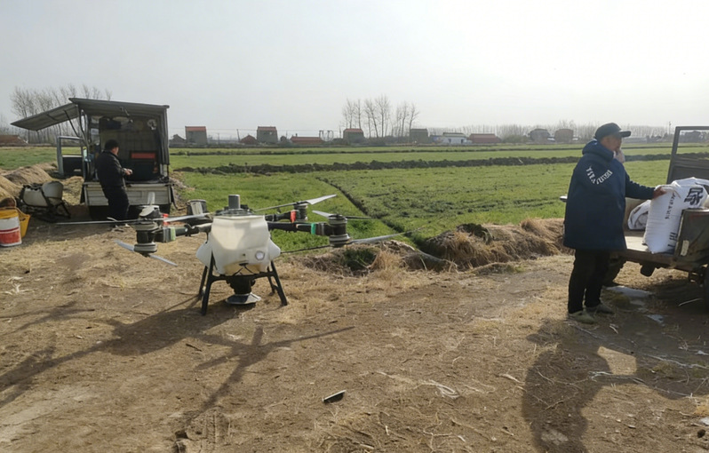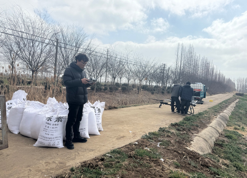在第五生产区12大队的麦田上空,一架架无人机循着预设航线平稳巡航,细密的返青肥料被精准、均匀地播撒在每一寸麦田,为小麦返青生长注入充足养分。“相较于传统人工施肥,无人机作业效率显著提升,既能精准控制用量、大幅提高利用率,还能有效减少浪费和环境污染,省时省力。”现场值守的农技人员一边紧盯作业轨迹,一边介绍道。为确保精准高效,农技人员反复调试航线,作业期间全程坚守,实时监测播撒效果、动态调整参数,以严谨细致的态度筑牢春管第一道防线。