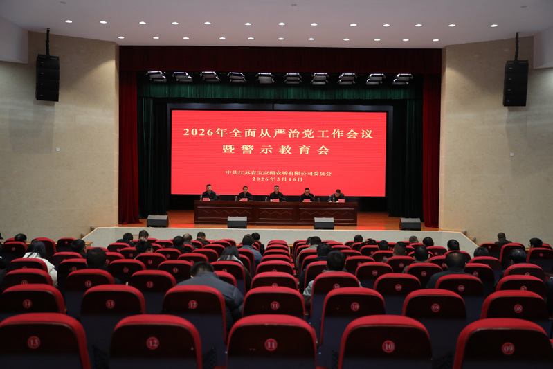 3月16日,宝应湖农场召开2026年全面从严治党工作会议暨警示教育会,会议认真贯彻落实习近平总书记关于党的建设的重要思想和关于党的自我革命的重要思想,全面总结2025年农场全面从严治党工作,研究部署2026年重点任务,同步开展警示教育、以案明纪、以案促改,为农场“十五五”发展开好局、起好步提供坚强政治保障和纪律支撑。农场公司党委书记、董事长何善栋出席会议并讲话,党委副书记、总经理姜杰主持会议,纪委书记苏学军作纪检工作报告,农场公司党委委员、纪委委员、各党组织书记、副书记、组织委员、纪检委员,各单位(部门)负责人,党群纪检部门工作人员等参加会议。